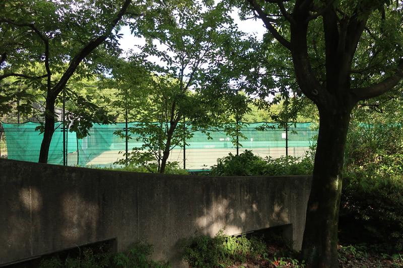 テニスコートが2面あります。休みの日には、たくさんの方が来て、テニスをしています。