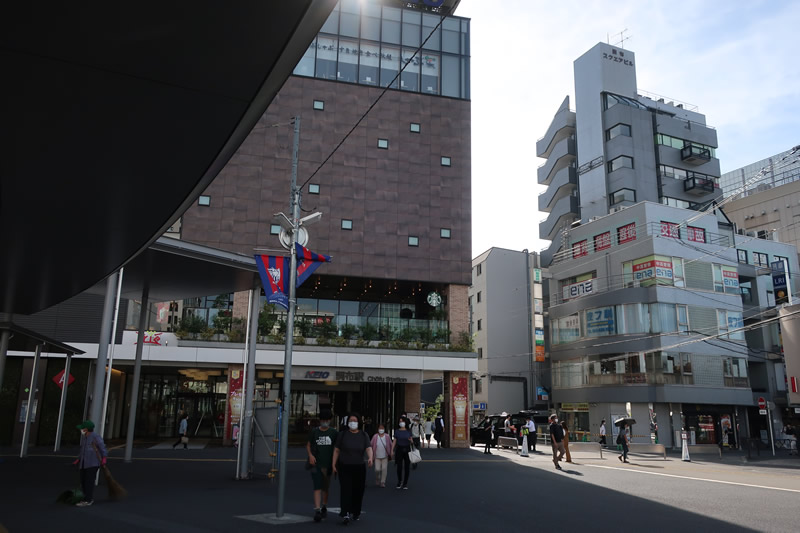 土曜日の朝9時ごろの調布駅前の様子です。