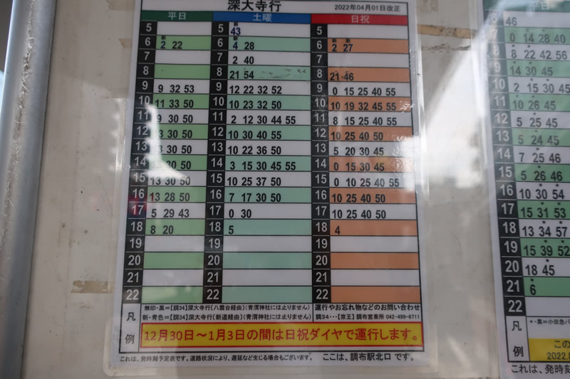 深大寺行きのバスの時刻表です。