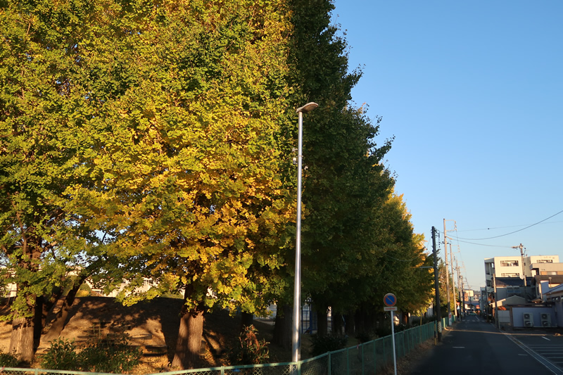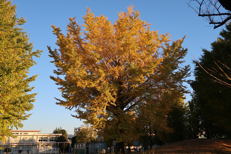 木の上の方は黄色く染まっており、日が当たる部分は黄金色に輝いて見えます。