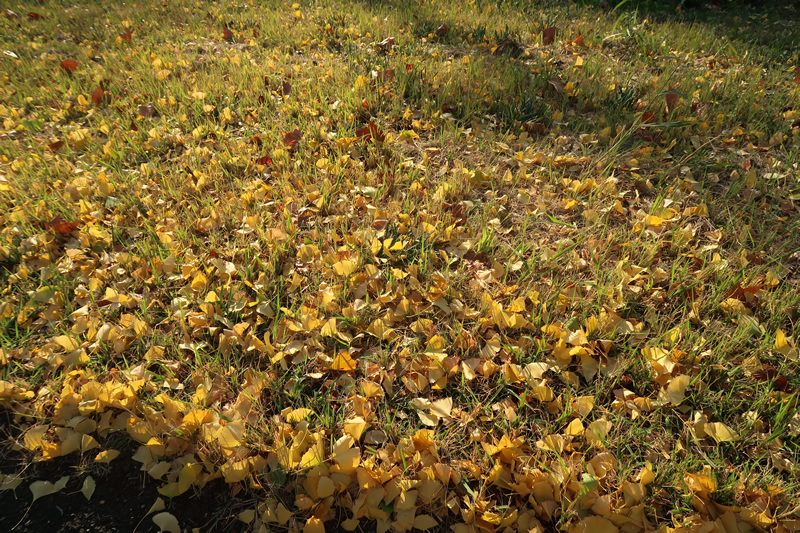 イチョウ並木もほぼ全部が黄色くなってきました。
