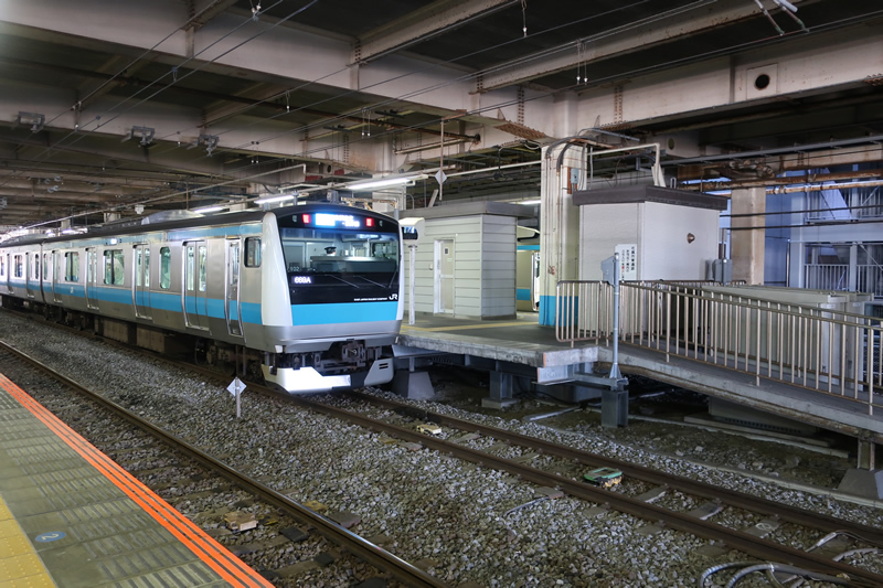 大船駅の電車です。反対側のプラットフォームですので、東京方面に向かう電車です。大船駅は大きくプラットフォームがたくさんあります。