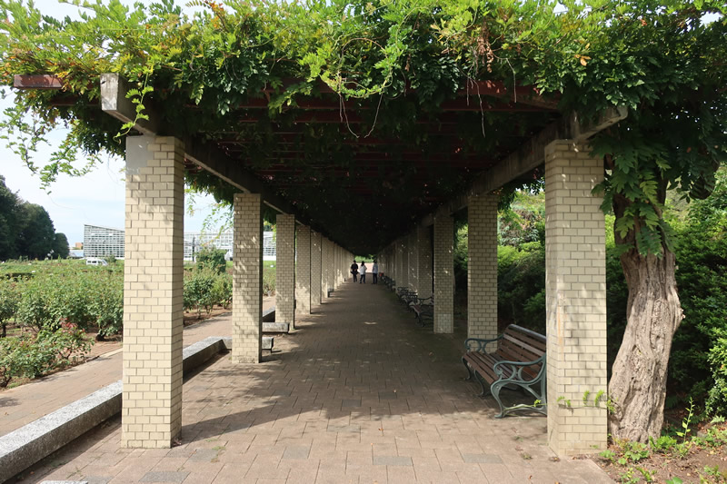 暑かったので、藤棚の下のベンチでゆっくりお茶を飲みました。