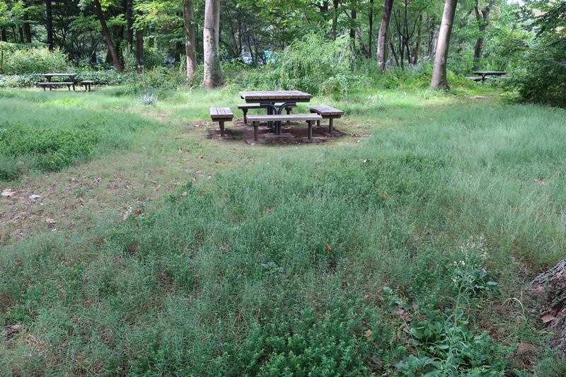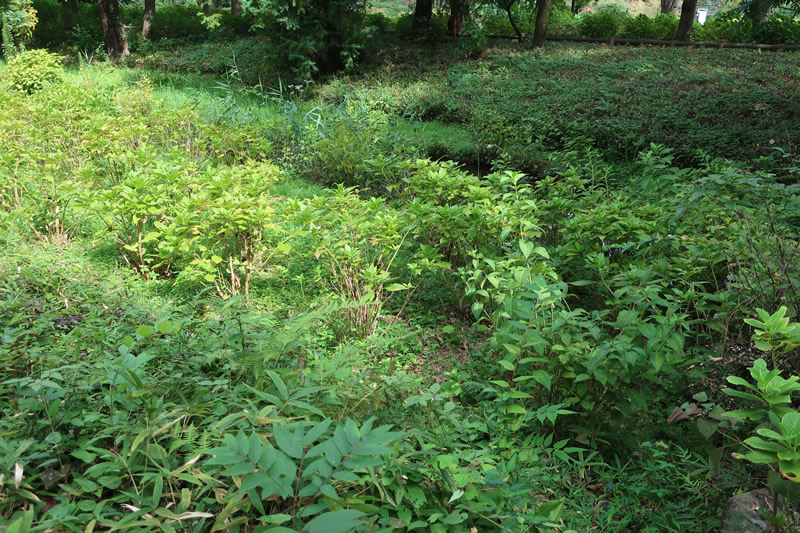 せせらぎの道に山野草が植えられています。