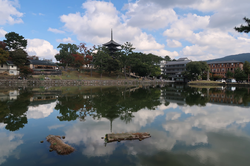 猿沢の池から眺める風景はとても気持ちのいいものです。