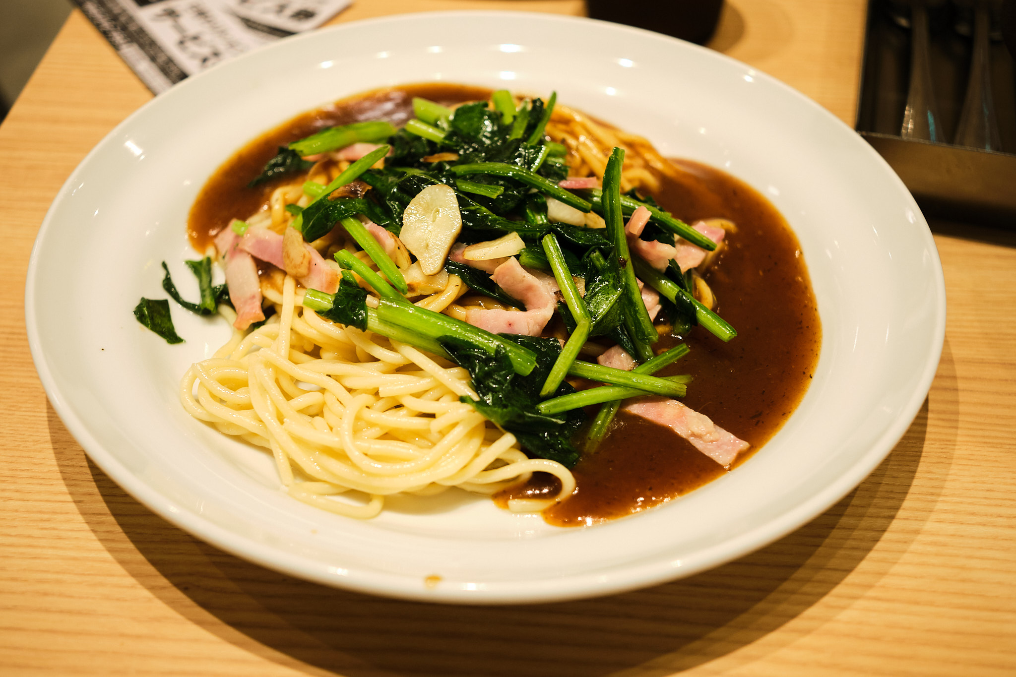 ほうれん草が入っていますが、よく見るとニンニクも入っているのかな?