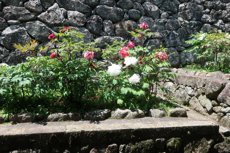 長谷寺は回廊の脇に牡丹の花が植えられています。