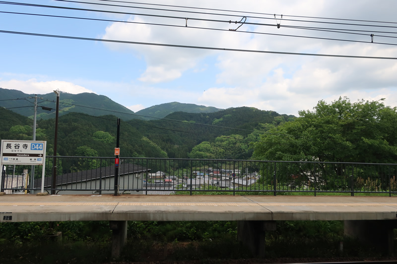 長谷寺の本堂の舞台から前方の山並みを見ました。