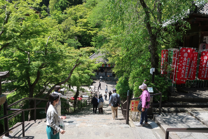 長谷寺はここから石段の回廊を登って本堂に行きます。